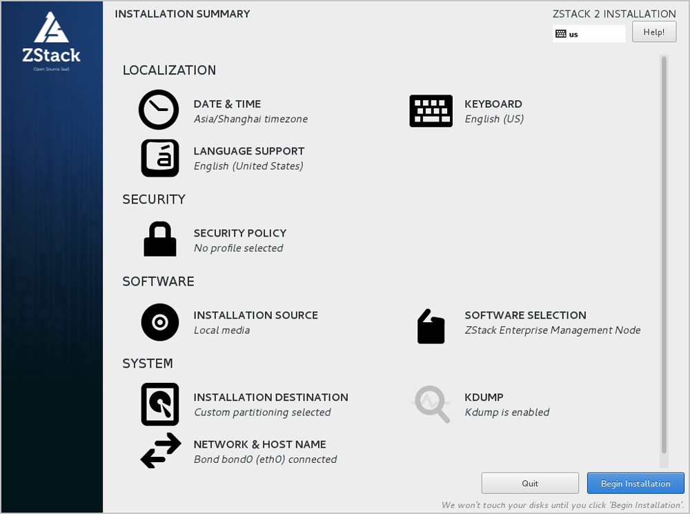 - 安装ZStack无需连接外网,也无须配置yum源,就可以实现完全离线安装;